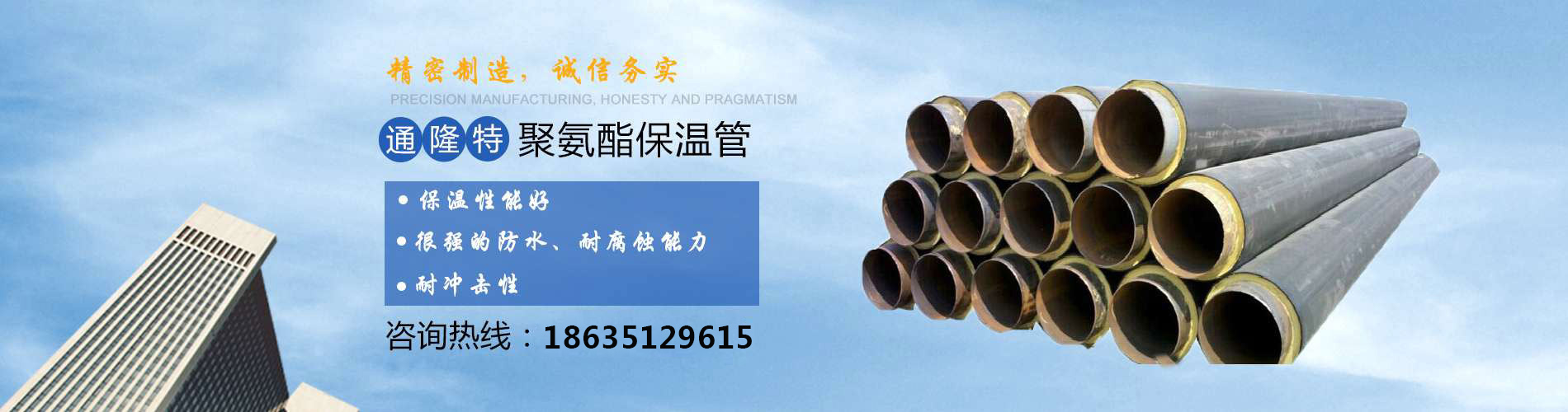 山西通隆特保溫材料有限公司是集生產、銷售、施工、服務于一體的現代化企業,通隆特保溫材料廠址位于太原市清徐縣徐溝鎮南內道村,辦公地址在太原市萬柏林區奇天瑞鋼材南市場B區18號,公司生產:聚氨酯黑黃夾克保溫管(管中管)、聚氨酯預制直埋保溫管(玻璃鋼防腐)、聚氨酯瓦殼、玻璃棉制品、橡塑保溫材料;承攬管道防腐、外墻保溫、噴涂保溫、鐵皮保溫工程,公司技術力量好,擁有生產設備,生產工藝和質量檢測手段,并且還注入了大批高技術...